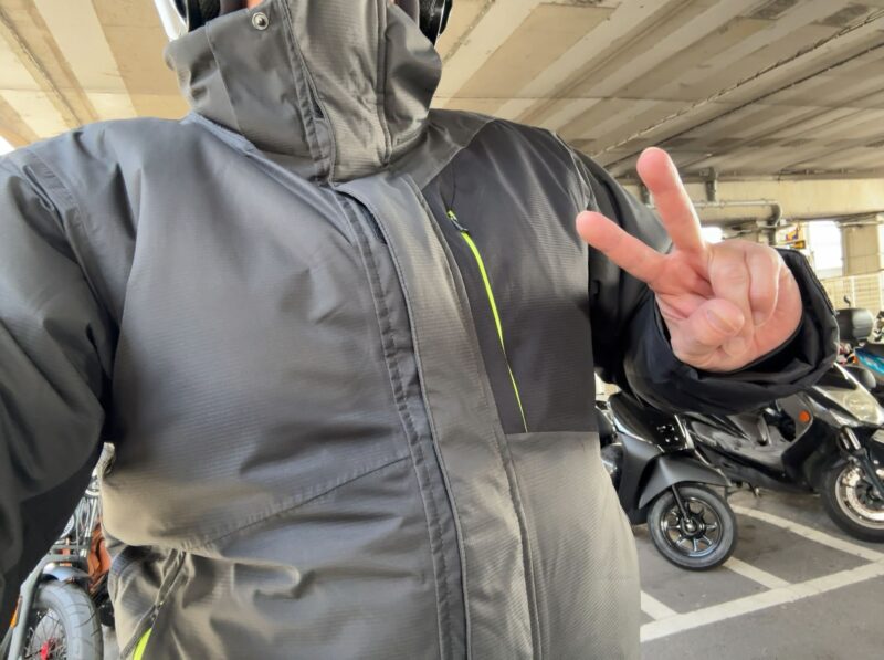 ワークマンの商品としては高価格帯かもしれませんが、もしバイクメーカーから同じようなハイスペックな防水防寒スーツが発売されたとしたら、この値段の3倍〜5倍は覚悟しなければならないでしょう。