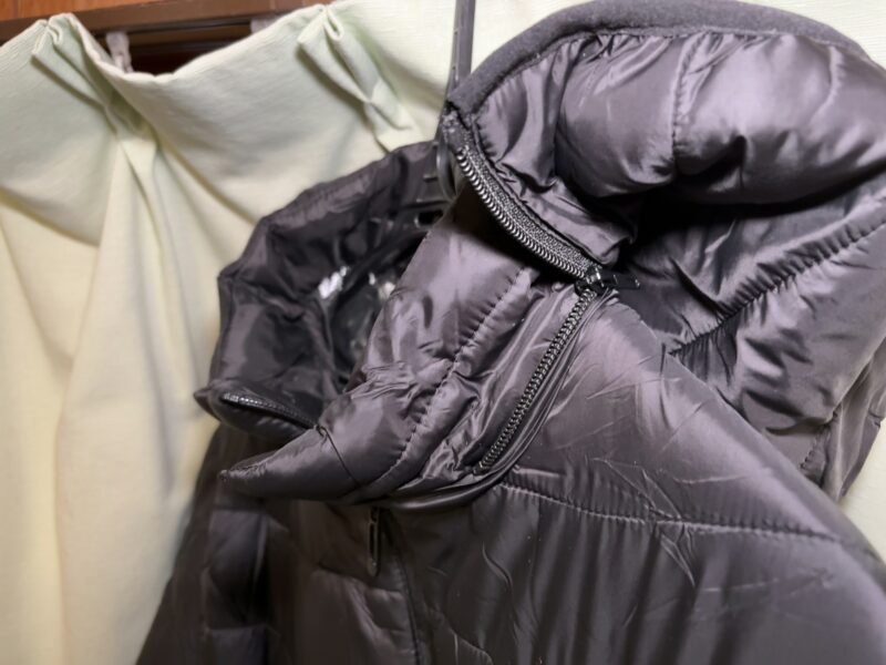 フードはファスナーで取り外し可能になっているので、ヘルメットを被るバイク乗りの私は早速外して使用します!