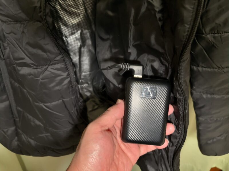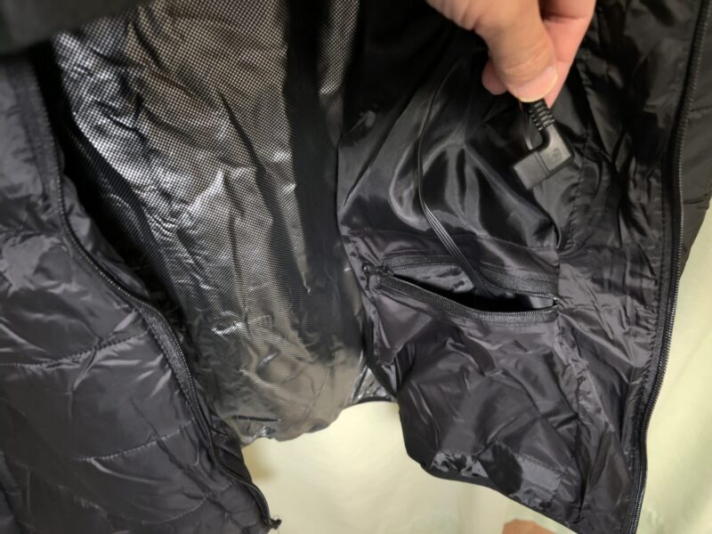 このジャケットは5V電圧設計なので、必ずモバイルバッテリーを使ってくださいね。直接コンセントに差し込むと電圧が高すぎて衣類が損傷する可能性があるので、絶対に避けましょう!