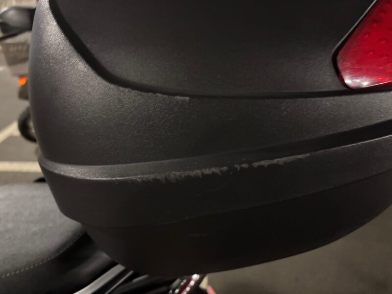 そしてリアボックスの角にまで、しっかりと擦り傷が付いています。