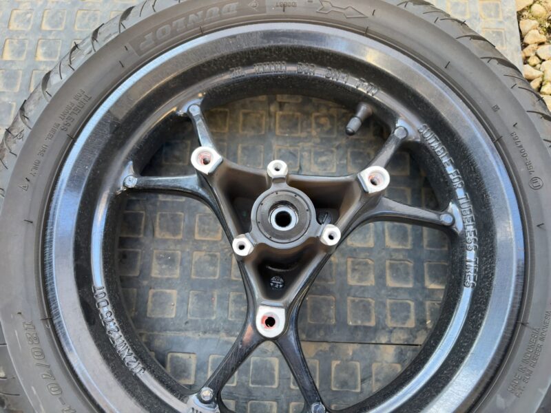 タイヤを戻し、ブレーキキャリパーの清掃&新品のブレーキパッドを組み込んだキャリパーを装着!