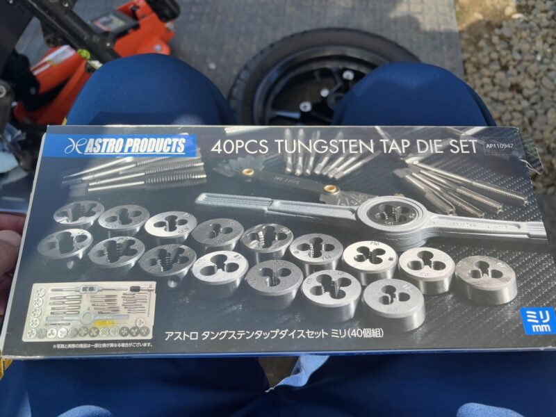 しかし、ネジ穴を覗くと……頑固なネジロック剤のカスがびっしり。 ここで、アストロのダイス(タップ)セットを召喚。